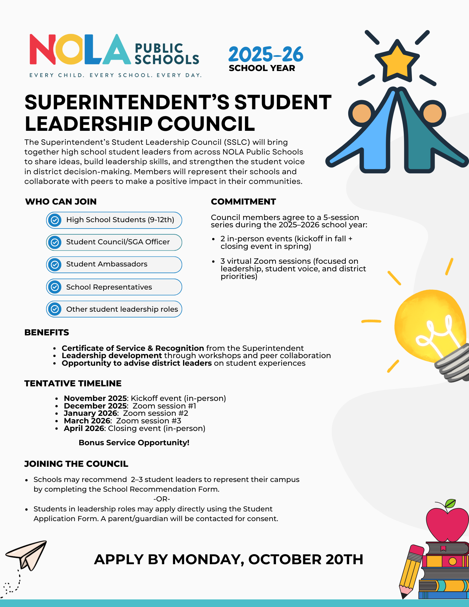Advisory Councils Advisory Councils offer the Superintendent and District at-large the opportunity to tap into the community at a grassroots level. Through the various councils, the district will disseminate vital information to be shared throughout the community, provide a space for firsthand information sharing, and serve as critical advisors on key district initiatives. These relationships will provide the Superintendent and District valuable perspective into the NOLA-PS experience and serve as champions of the district within the community and their networks.
