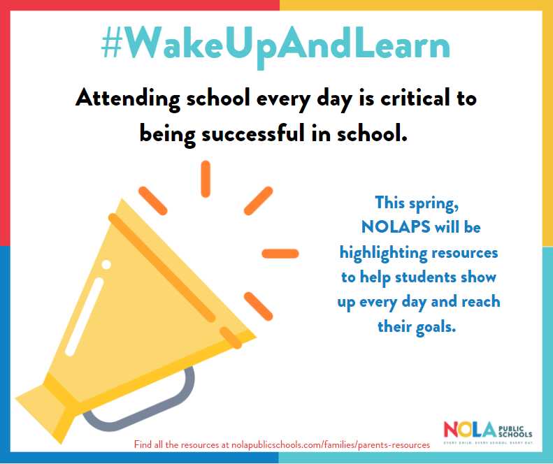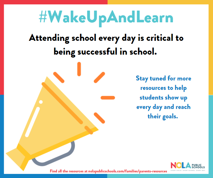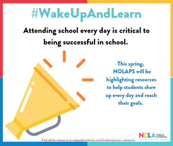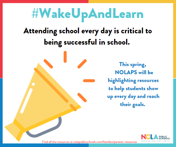 Attendance is critical to be successful at school. This page shares resources for some of the common challenges that can get in the way of strong attendance at school. Resources listed include supports from NOLAPS, community partners, and the City of New Orleans that can help you and your family make every day at school great.