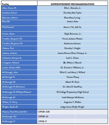 NOLA-PS Superintendent’s Facility Renaming Recommendations Will Head to OPSB for Final Vote Thursday