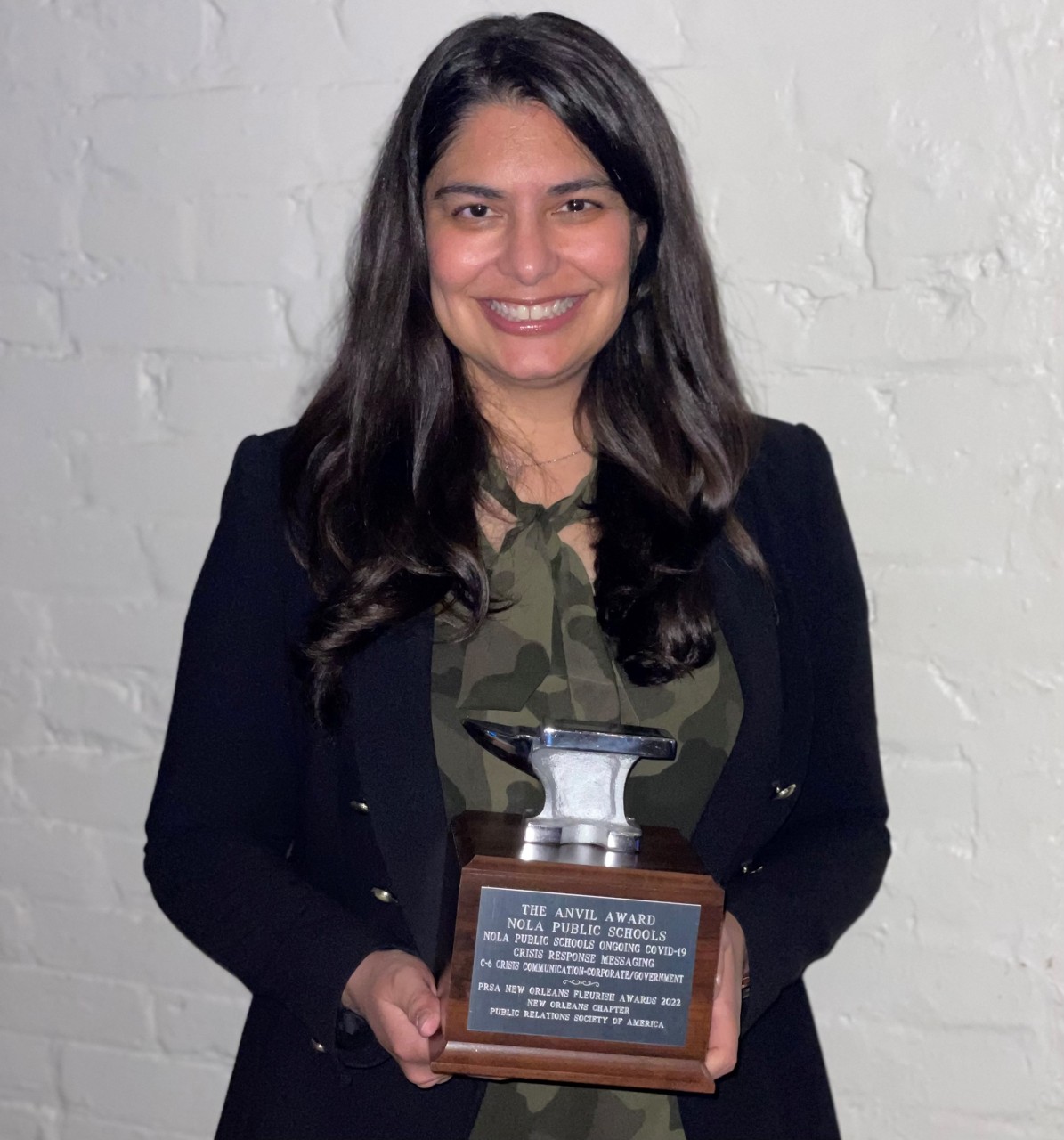 (New Orleans – Jan. 12, 2022) – Taslin Alfonzo, NOLA Public Schools' (NOLA-PS) Director of Media Relations, was awarded the coveted Silver Anvil Award by the Public Relations Society of America's (PRSA) New Orleans Chapter.