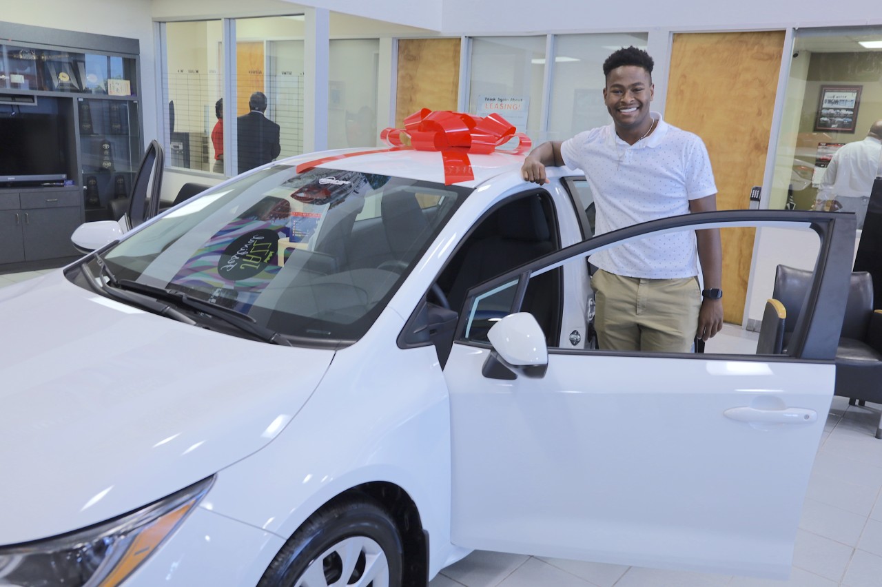 (New Orleans – (May 24, 2023) – 18 year old Macailen Davis, a soon to be graduate of The Willow School won this year's Stay in School Car Giveaway. Davis who plans to study finance at LSU walked away with 2023 Toyota Corolla LE for being one of 36 NOLA Public School (NOLA-PS) students to have perfect attendance in their senior year of high school. He was randomly selected via a raffle.