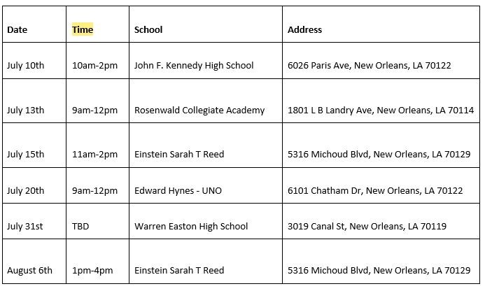 To help provide easy access to the vaccine, NOLA-PS, in partnership with local health partners, will be continuing to offer its summer mobile vaccine drive to eligible students 12 and older during the following dates, locations, and times: