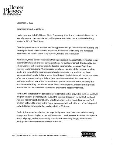 Plessy to remain in McKenna Building (New Orleans – February 27, 2024) — Homer Plessy Community Schools (Plessy Schools) and NOLA Public Schools (NOLA-PS) are pleased to jointly announce a significant decision regarding the permanent site for Homer Plessy Community School's elementary program. After careful consideration and community engagement, t...